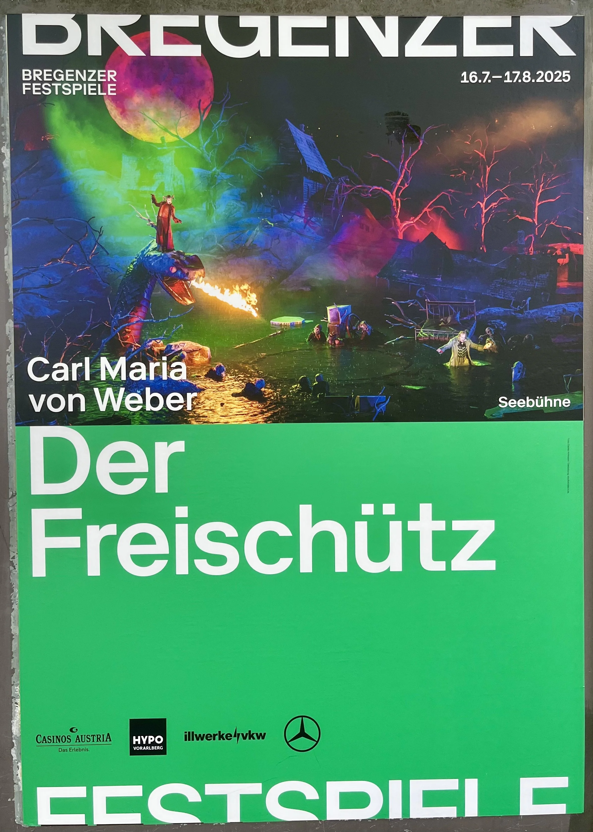 Carl Maria von Weber „Der Freischütz“ auf der Seebühne in Bregenz - ein Genuss für die Augen und die Ohren. Und es war die letzte Aufführung des Freischütz, denn ab nächstem Jahr steht „La Traviata“ auf dem Programm der Bregenzer Festspiele.