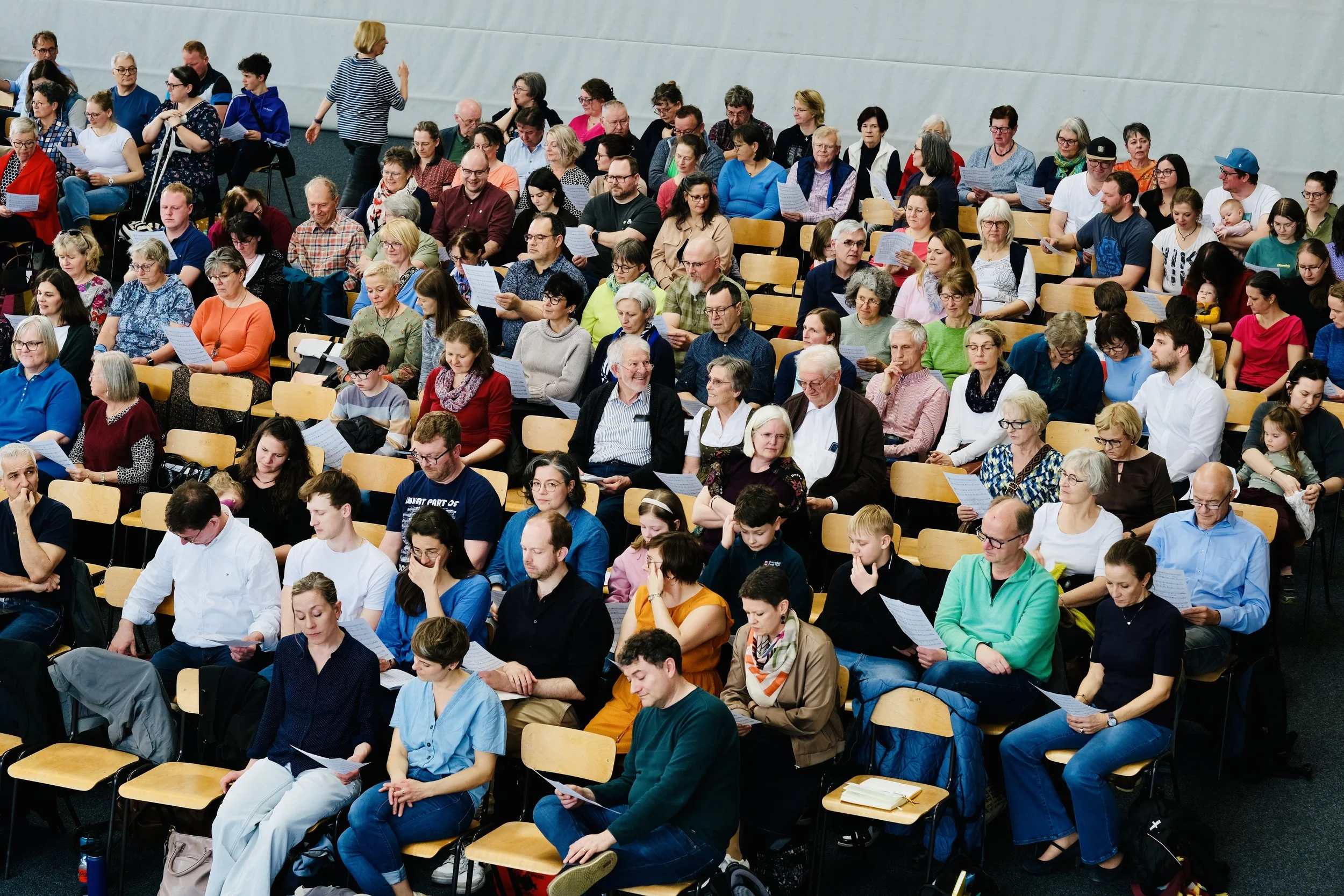 Jedes Jahr in der Woche nach Ostern versammeln sich Chorbegeisterte Menschen, (dieses Jahr sind es 161 Erwachsene und 68 Kinder), zur Chorwoche des Bayerischen Sängerbundes in Bad Feinbach. Eine Woche lang werden in Chorstudios unter professioneller Leitung von renommierten Chorleiterinnen und Chorleitern Stücke fürs geistliche Konzert eingeübt. Wie auch schon die Jahre vorher darf ich diese Veranstaltung fotografisch begleiten. Hier ein paar erste Eindrücke.